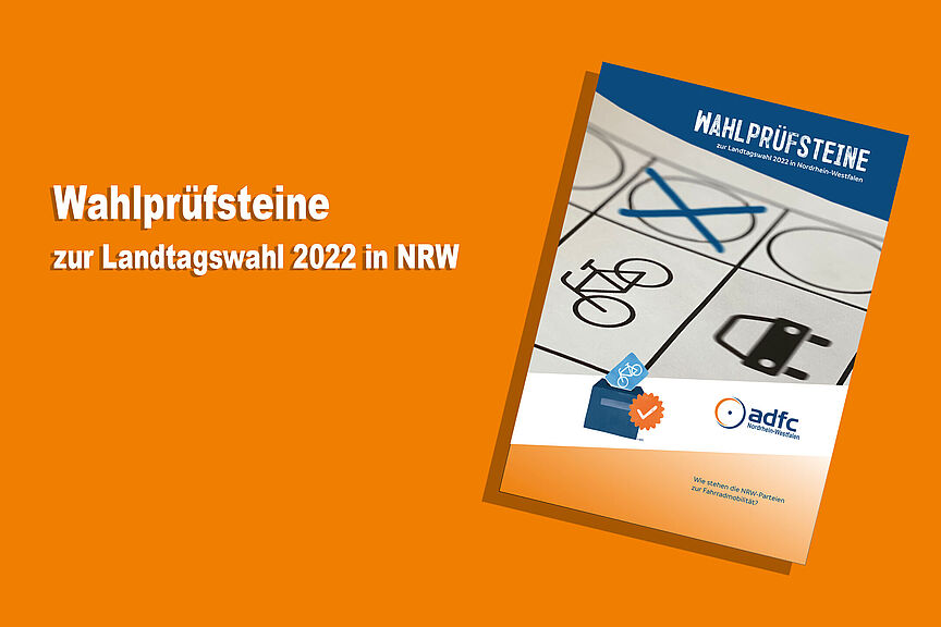 Die Wahlprüfstein-Broschüre mit den Bewertungen und Positionen des ADFC NRW sowie eine ergänzende Übersicht der Bewertungen zu den einzelnen Antworten der Parteien finden Sie in der blauen Infobox.